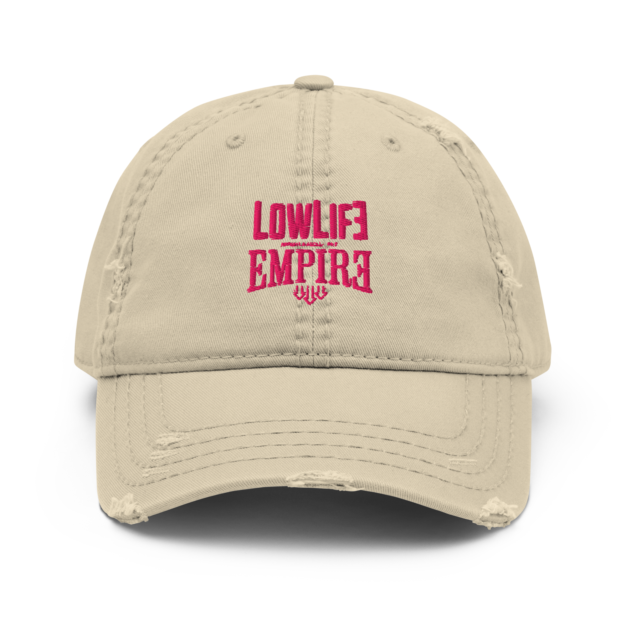 SELF TITLED — Distressed Dad Hat (Pink Logo / Khaki)