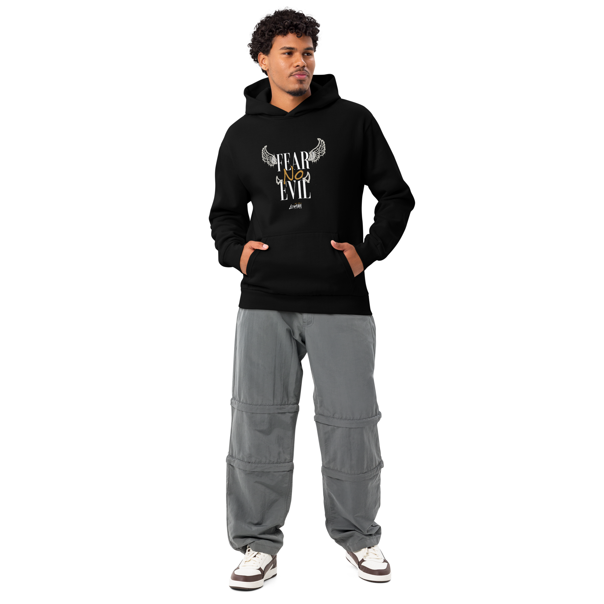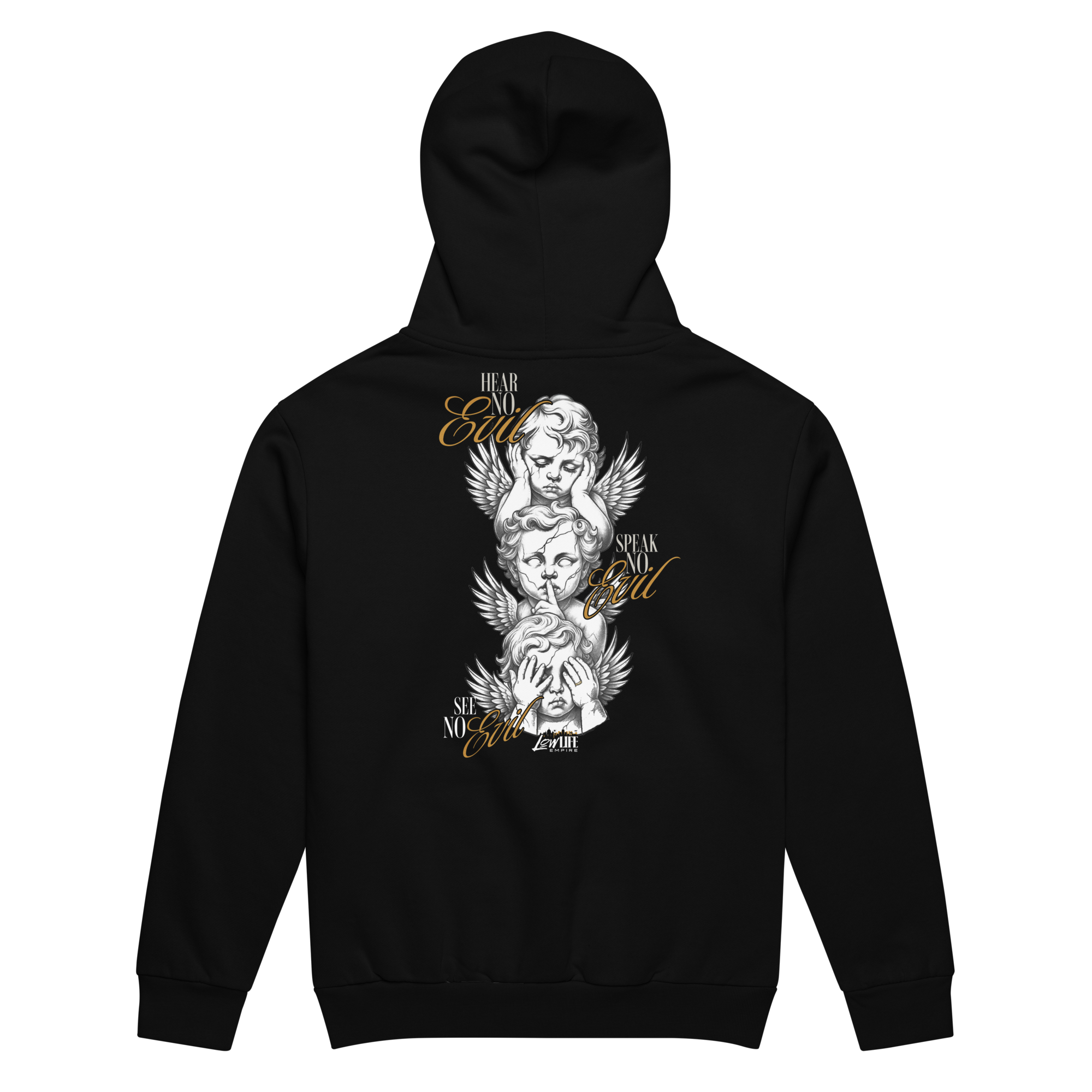 The FEAR NO EVIL Urban Hoodie is a visual manifesto—strength through restraint, power through discipline. Featuring an intricate front and back graphic inspired by the timeless proverb, this piece represents mental armor in a world that tests resolve daily.