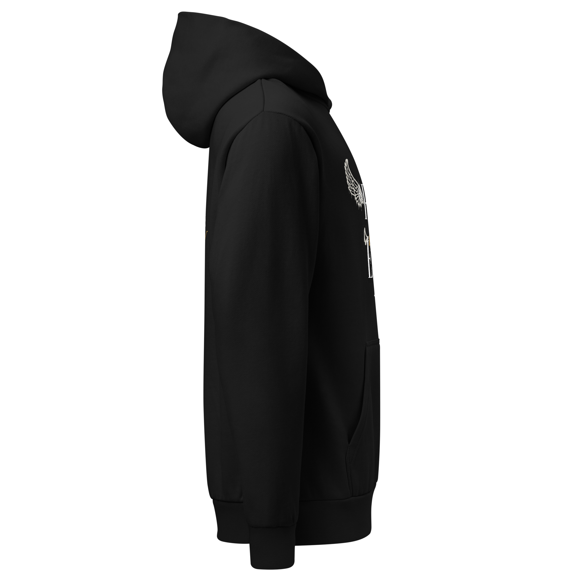 Constructed from a heavyweight cotton–recycled polyester blend, this hoodie is built to wear like armor. The 10 oz fabric gives it structure and presence, while the oversized fit and dropped silhouette create a commanding, modern profile. A two-panel hood with no drawcords keeps the look clean and intentional, and the kangaroo pocket adds everyday function without distraction.