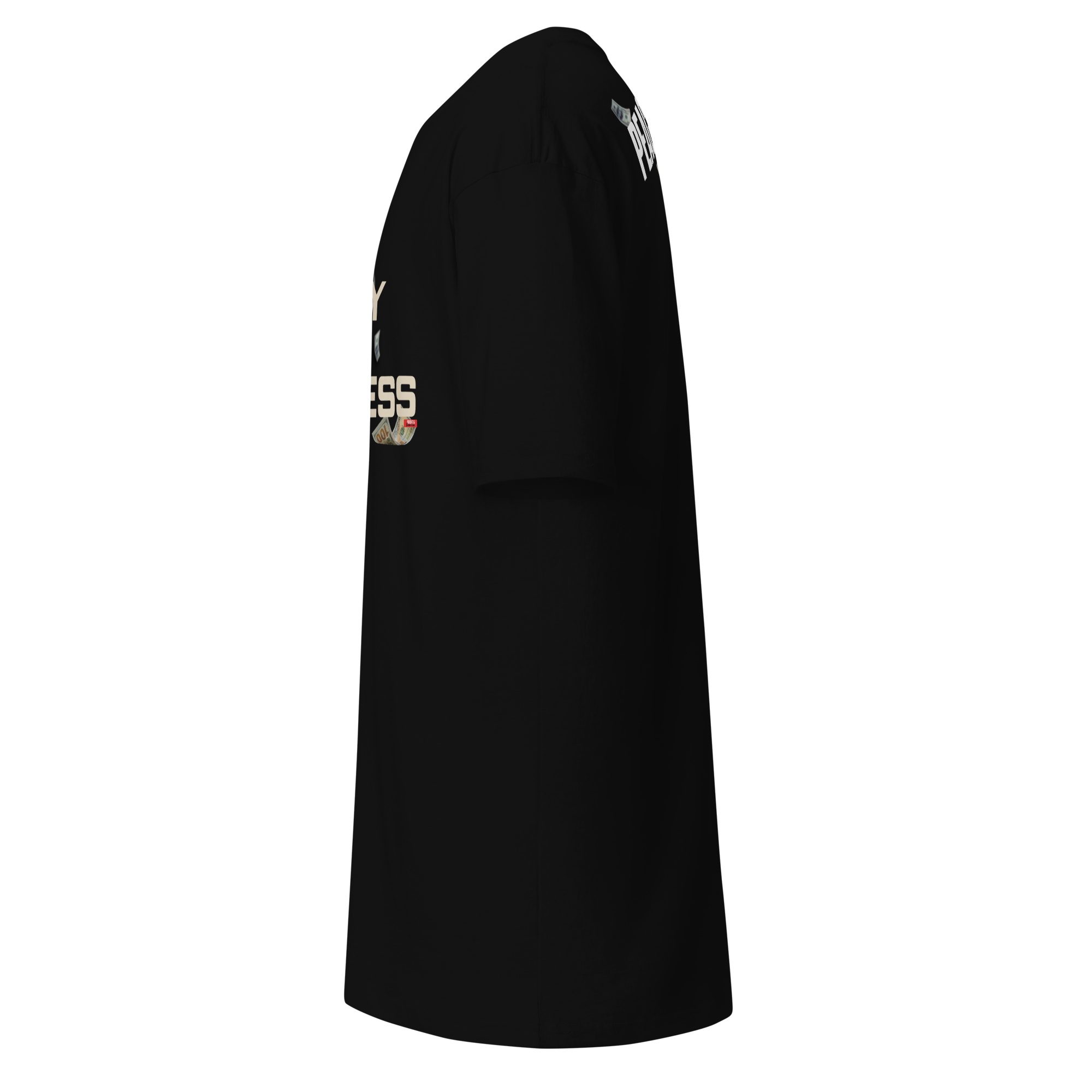 The MONEY CAN’T BUY HAPPINESS Men’s Premium Graphic Tee is a reminder learned the hard way. The shattered-currency graphic breaking through the phrase says what experience already taught you: wealth without purpose is empty, and status without soul fades fast.